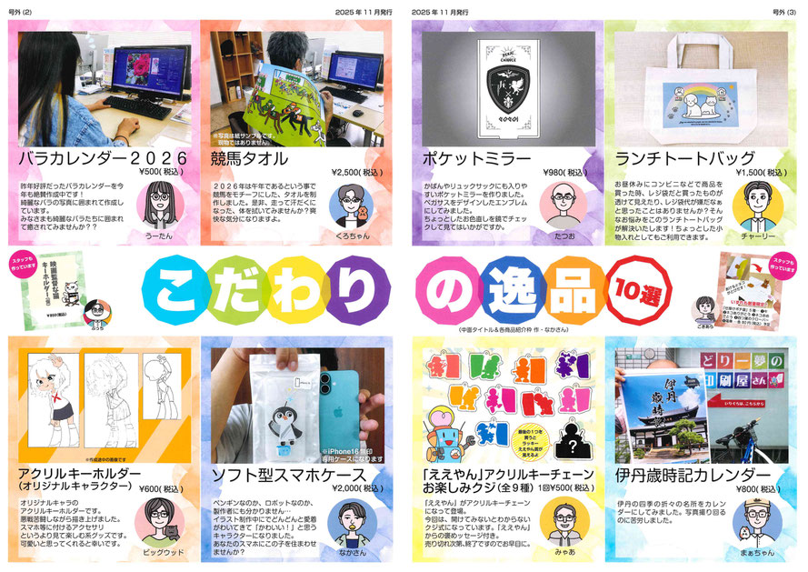 どり一夢の印刷屋さん展では、日々のお仕事で身につけた技術や経験を思う存分発揮した集大成の作品を展示・販売しています。今回もカレンダーや雑貨・小物など、