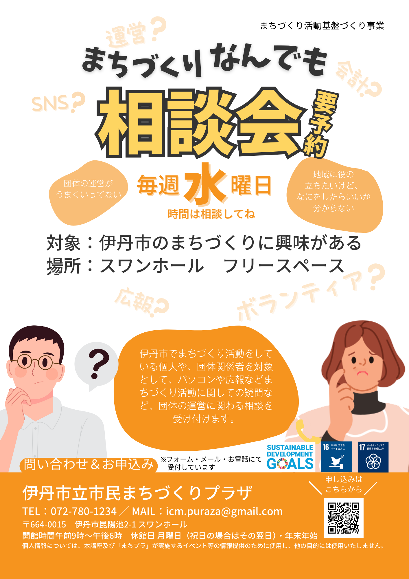 そうです、団体の運営のことや、個人での活動に関する不安・・・様々なお悩みを解消するべくまちプラがお手伝いをします。