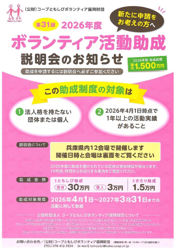 2026年度 ひょうごコミュニティ財団 助成団体募集